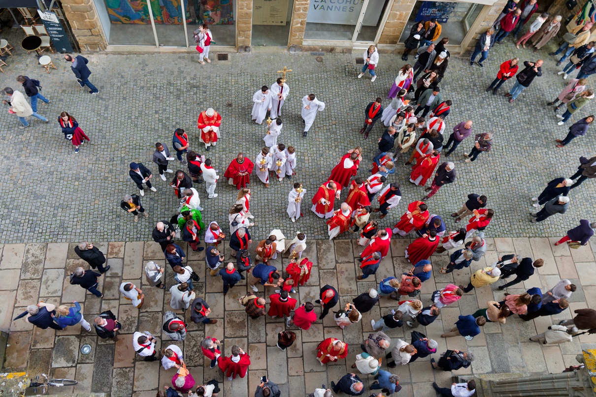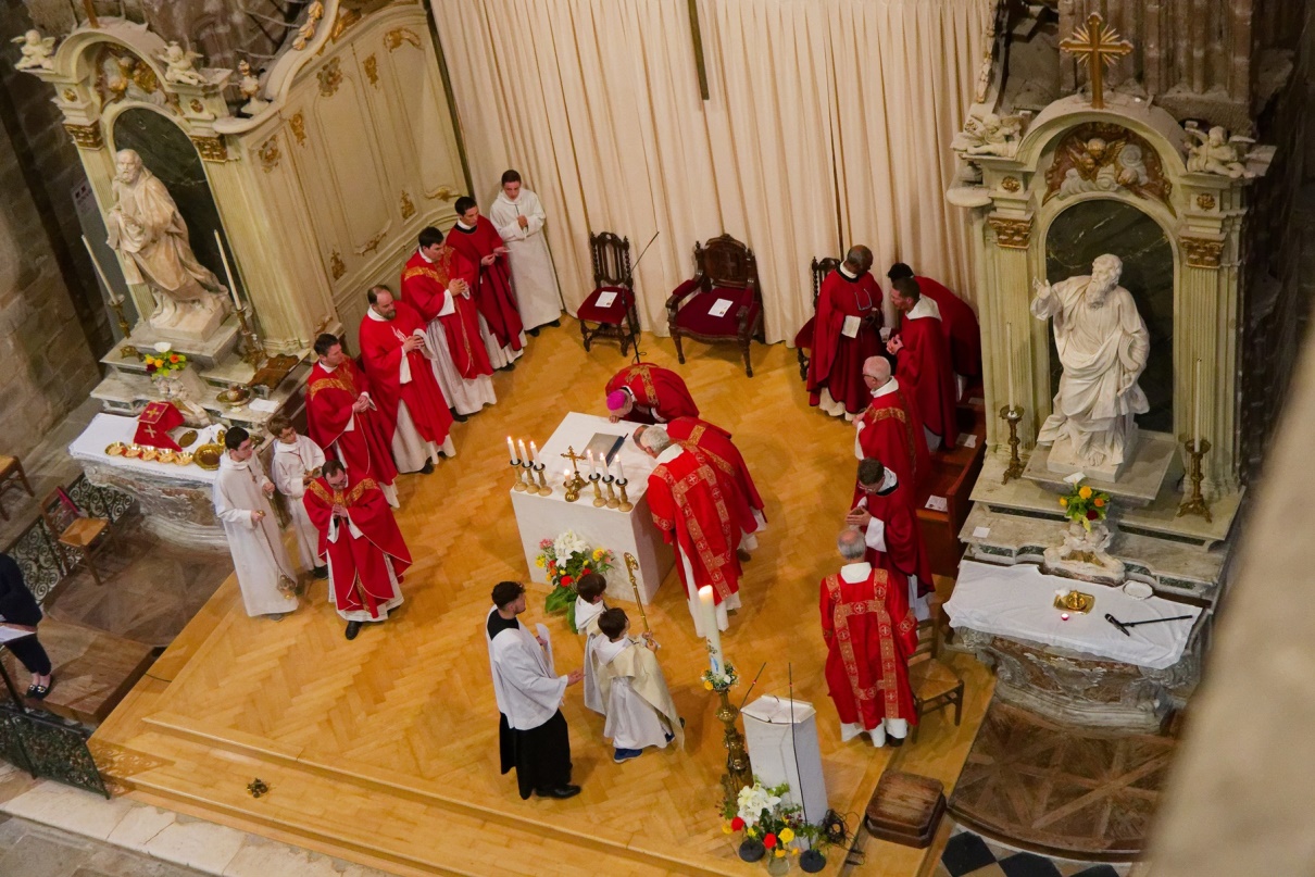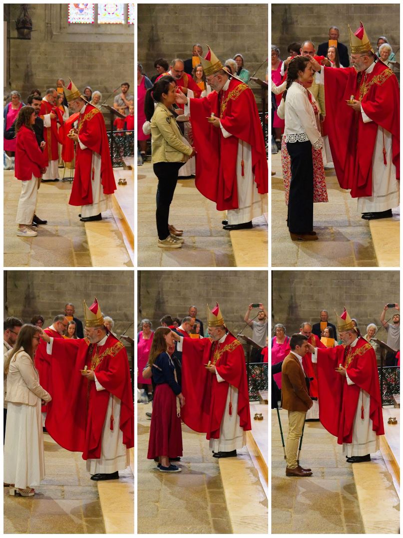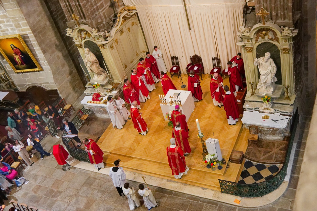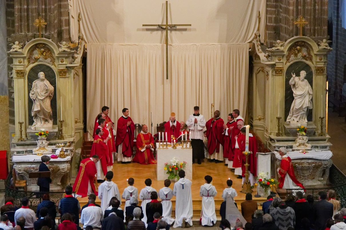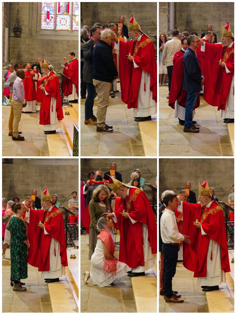 Ci-dessous un aperçu de la célébration marquée par la couleur rouge des vêtements liturgiques, symbole de l'Esprit-Saint qui embrase toute l'Eglise en la fête de la Pentecôte.