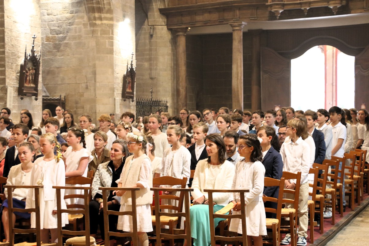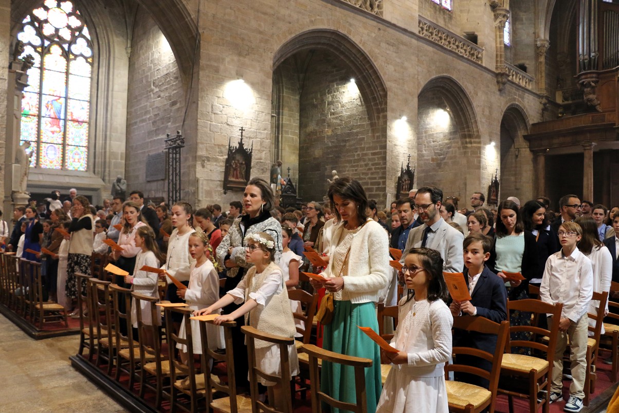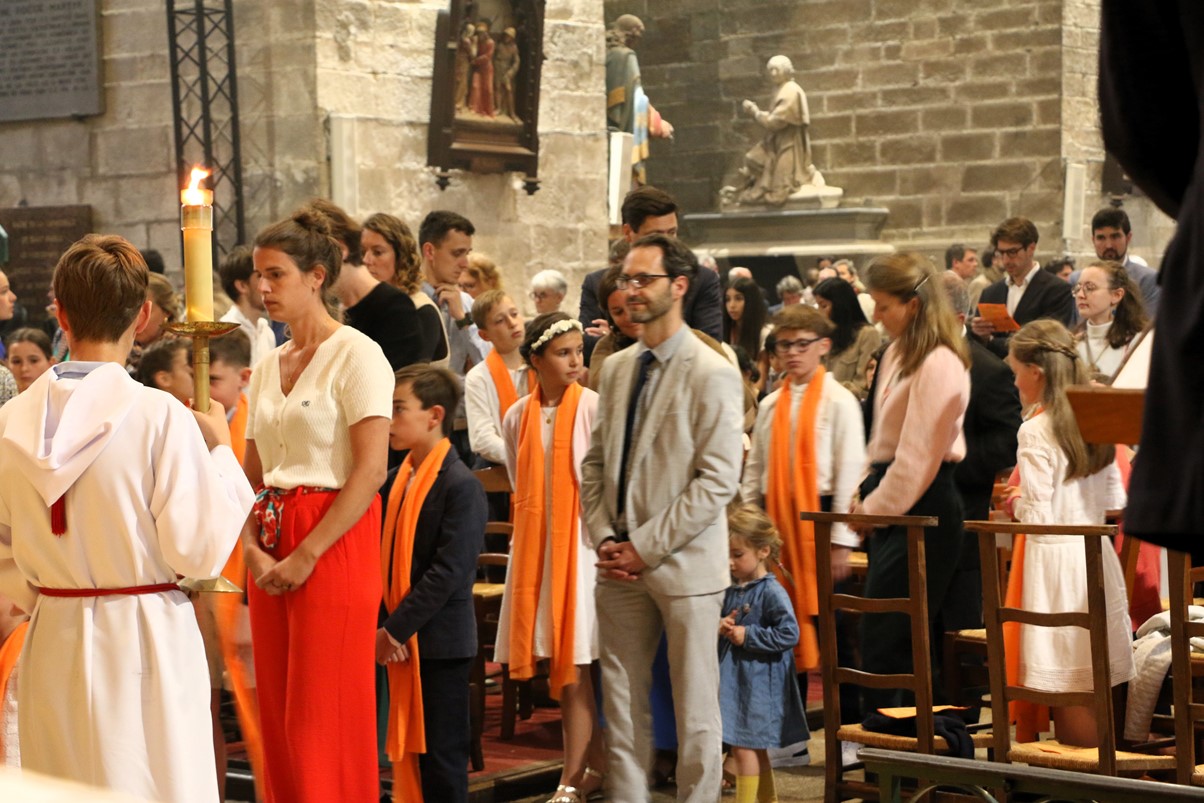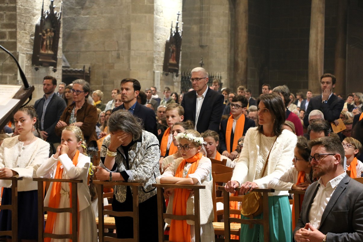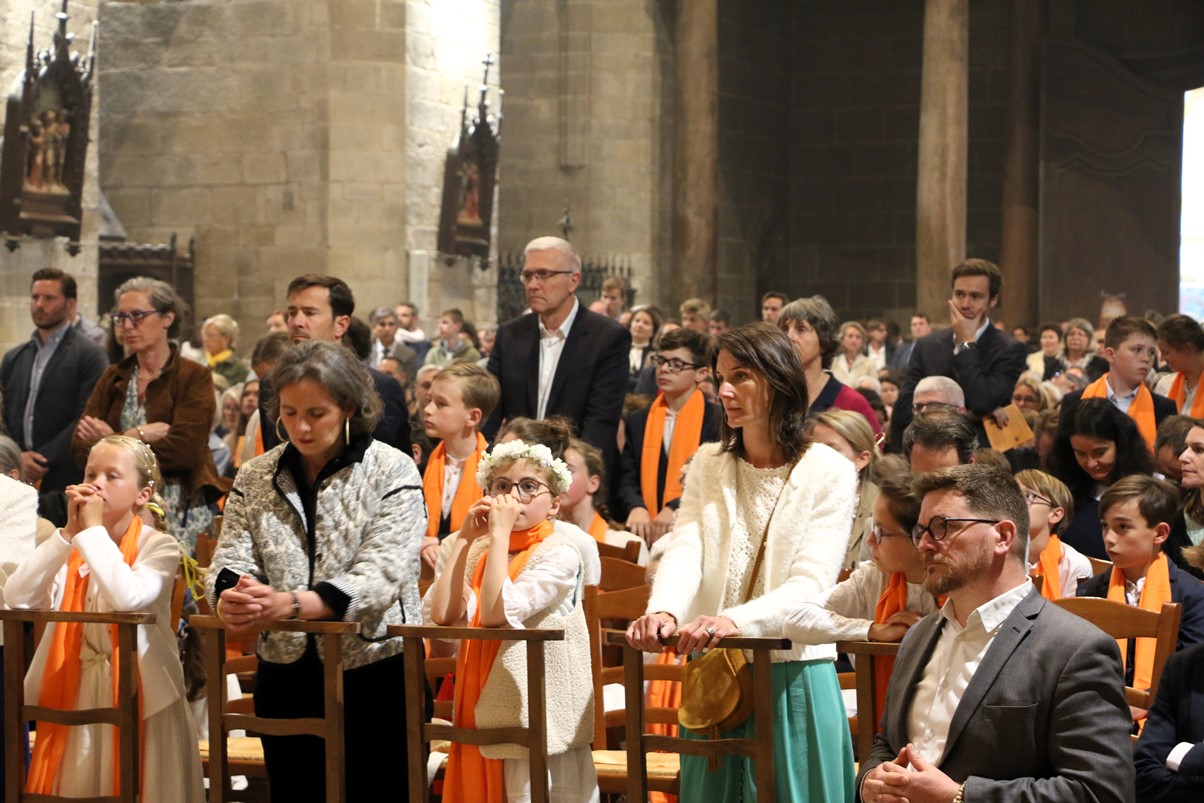 Au cours de la messe de 18 heures ce 25 mai 2024, Mgr Centène a conféré le sacrement de la confirmation aux jeunes du doyenné de Vannes et Arradon. Cathédrale comble pour cet évènement, car les jeunes étaient accompagnés de leur famille et de leurs éducateurs.