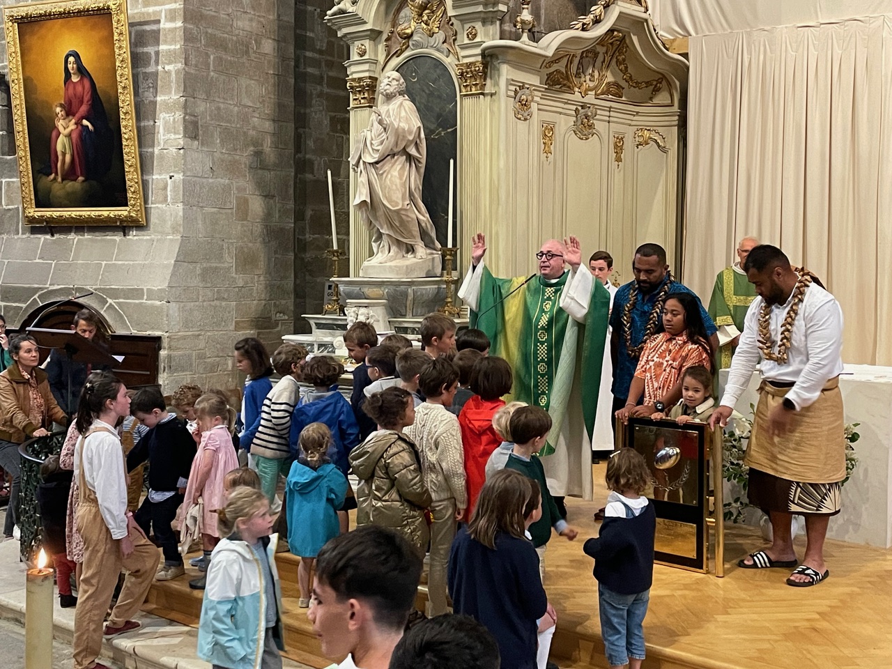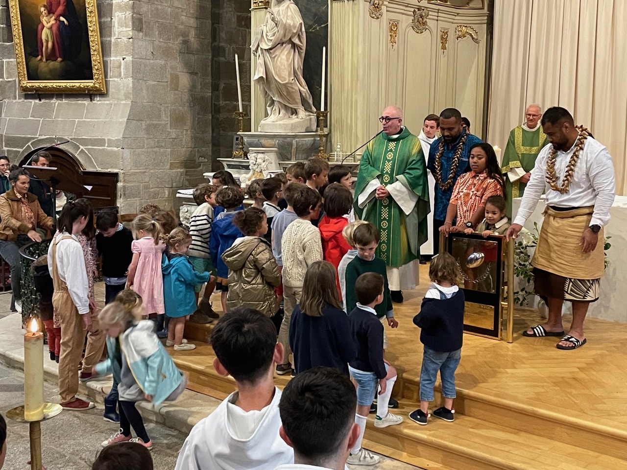 Les enfants présents étaient émus de voir de si près les 2 héros vannetais, qui font tellement honneur à la ville et à notre paroisse.