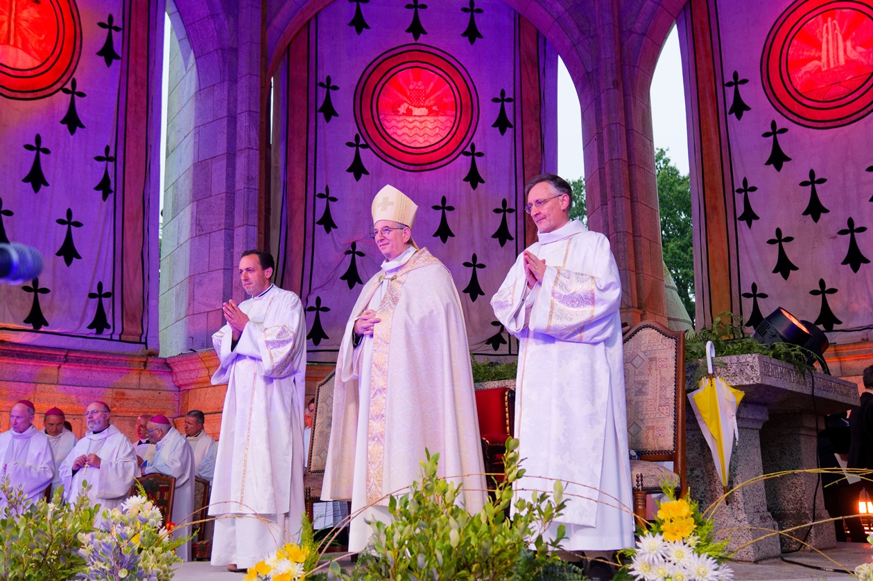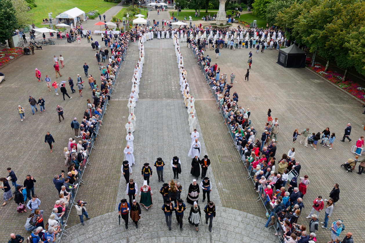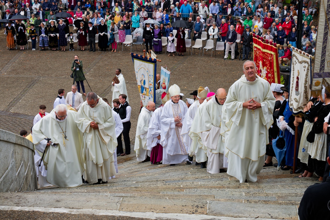 Cette année, les festivités du grand pardon de Sainte Anne d'Auray étaient présidées par Mgr Bruno Feillet, évêque de Sées (Orne). Il était entouré de ses confrères épicopaux titulaires des 5 diocèses bretons et de nombreux prêtres.