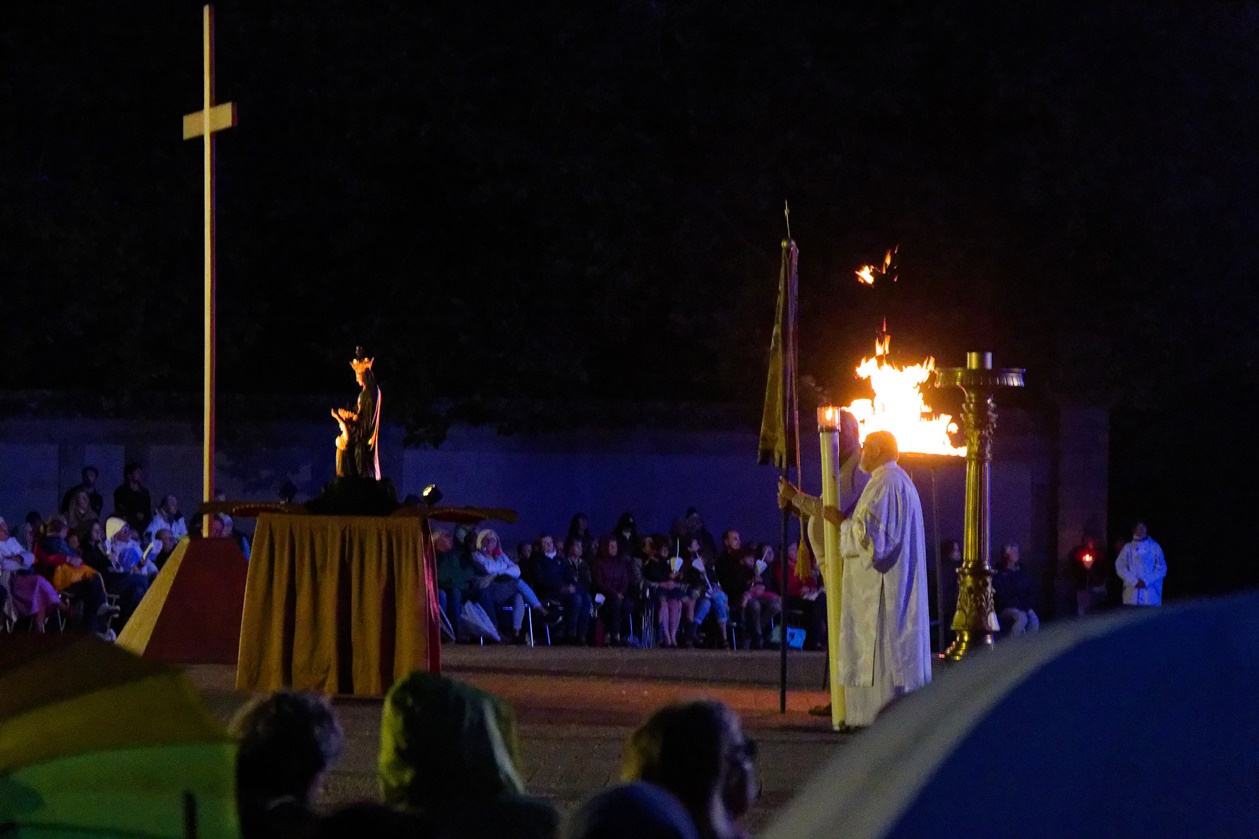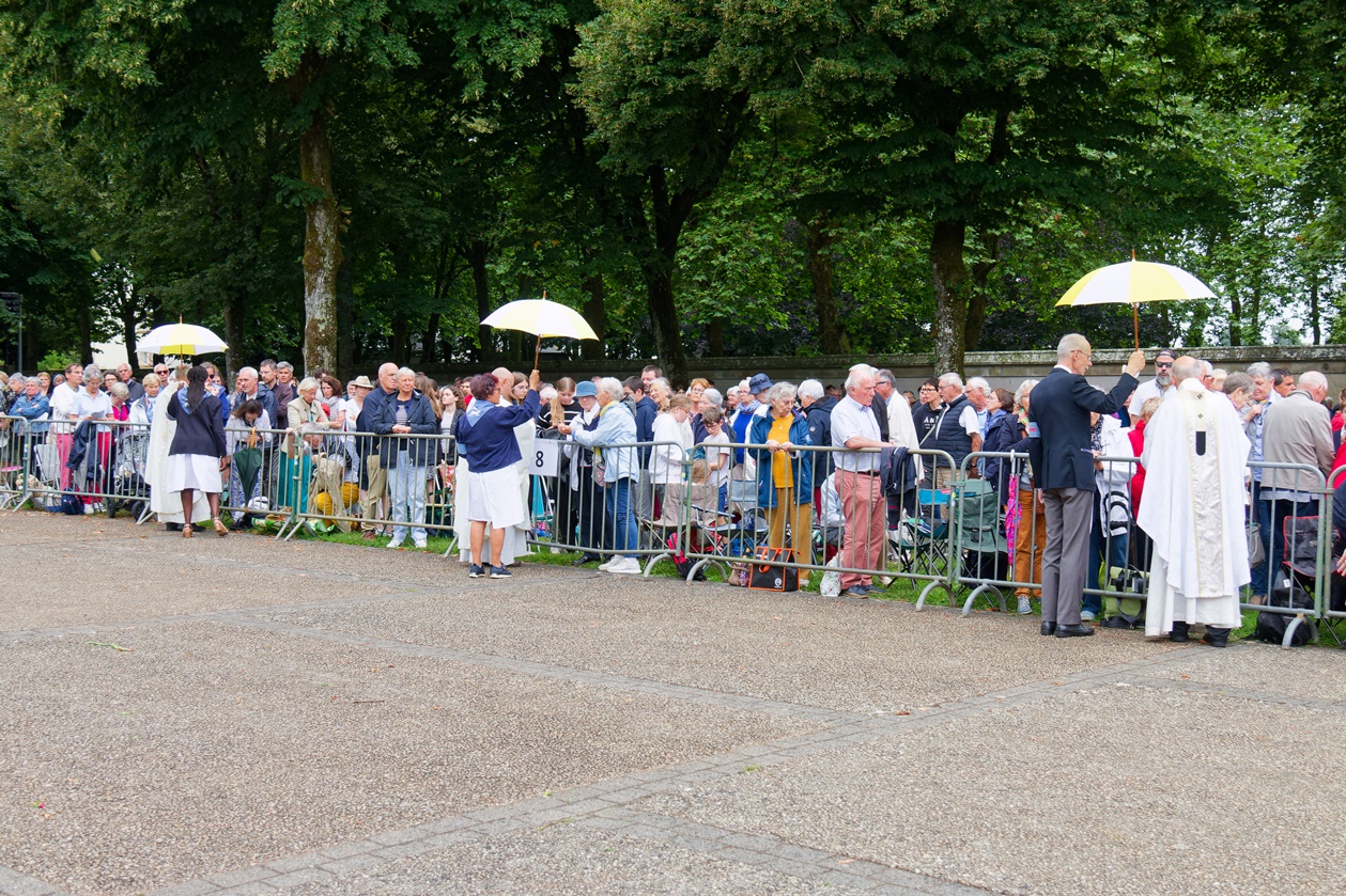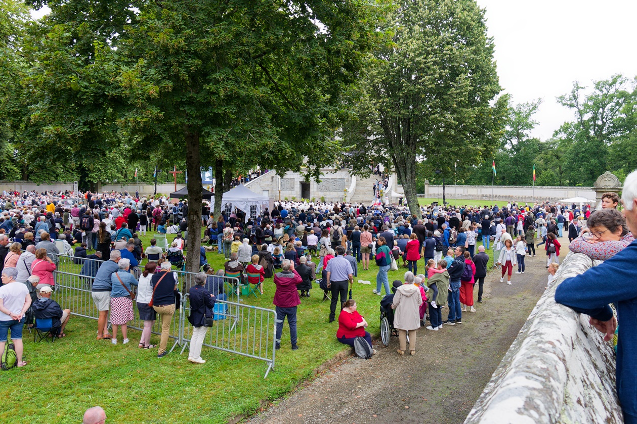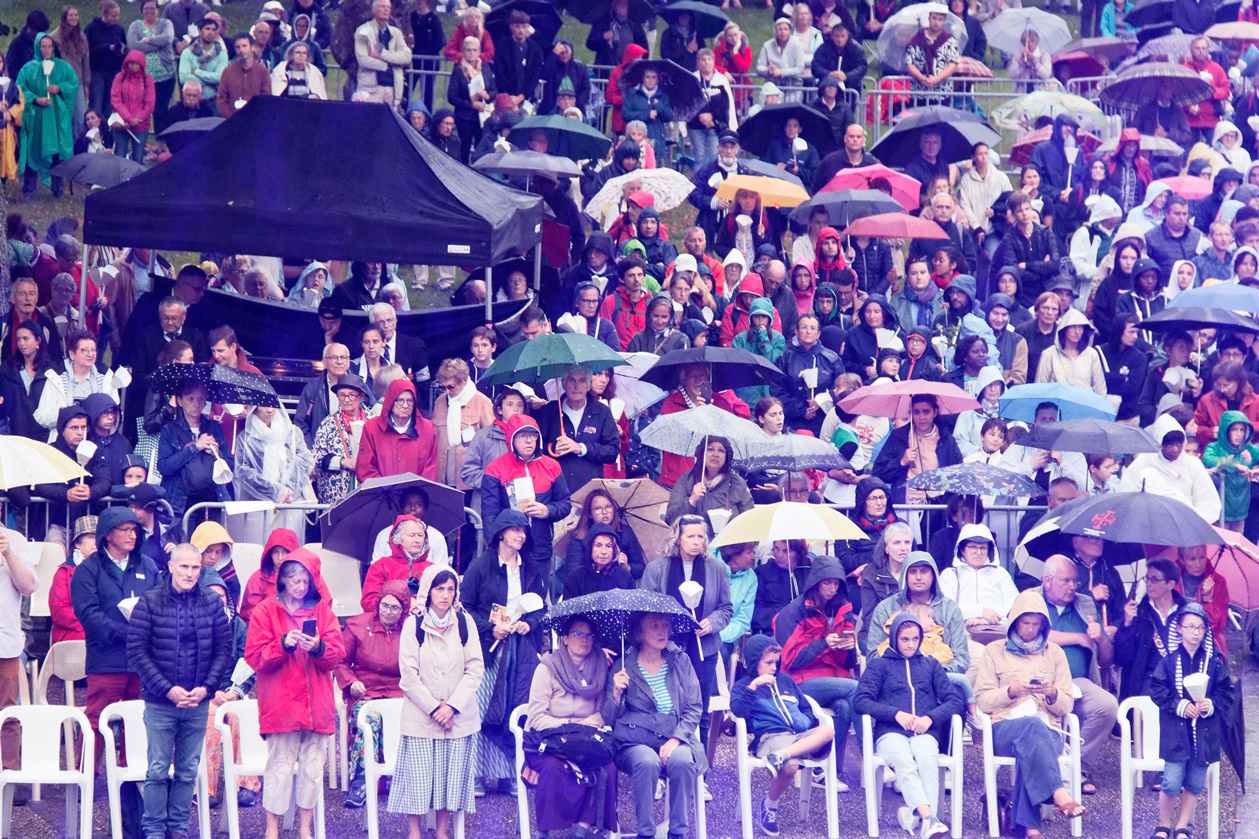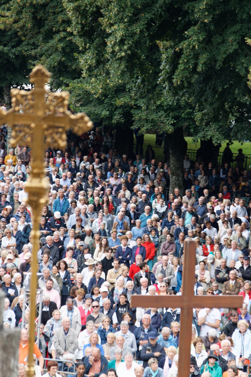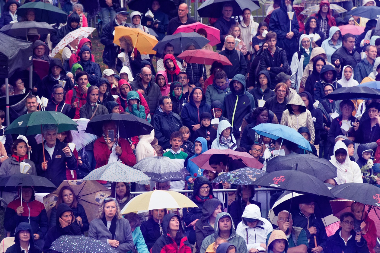 Après la grande veillée aux flambeaux de la veille au soir, des centaines de fidèles se sont de nouveau retrouvés devant le Mémorial pour la messe pontificale.