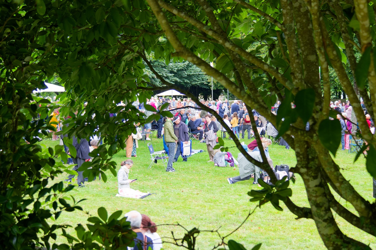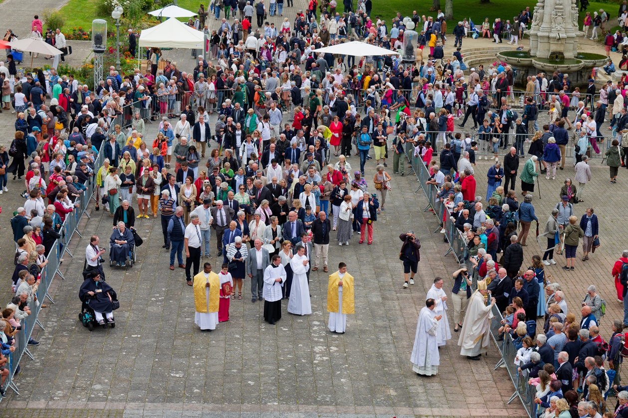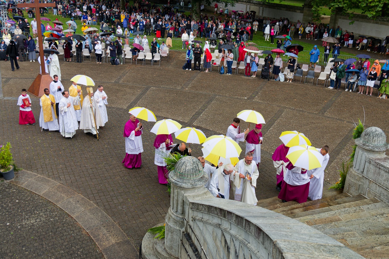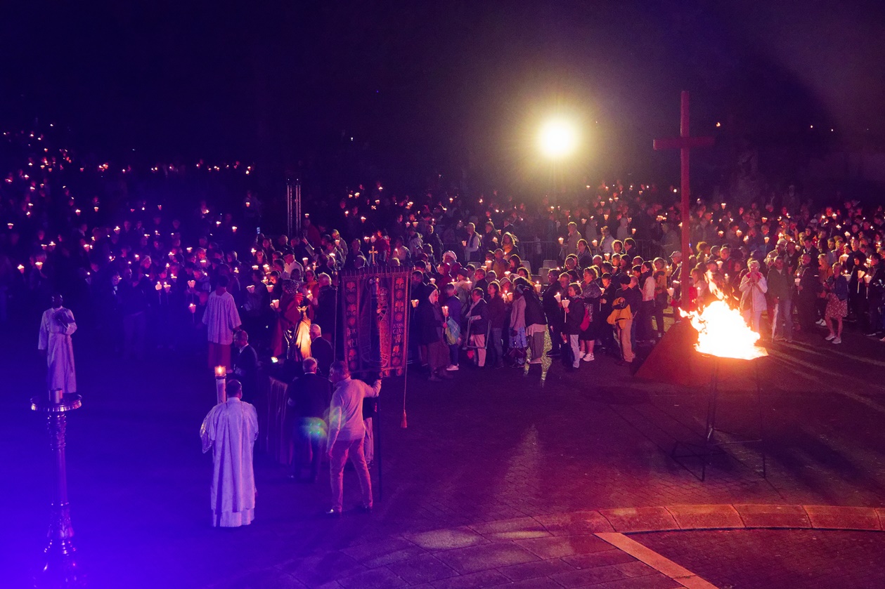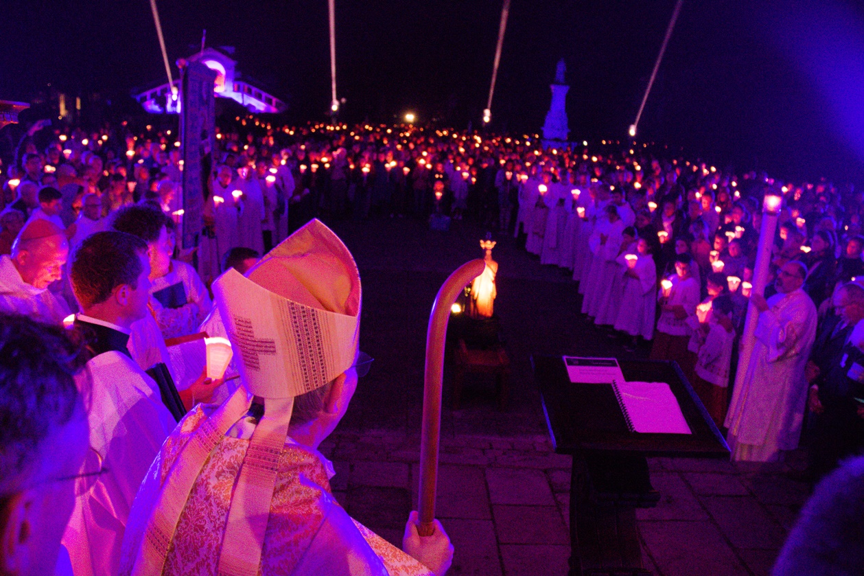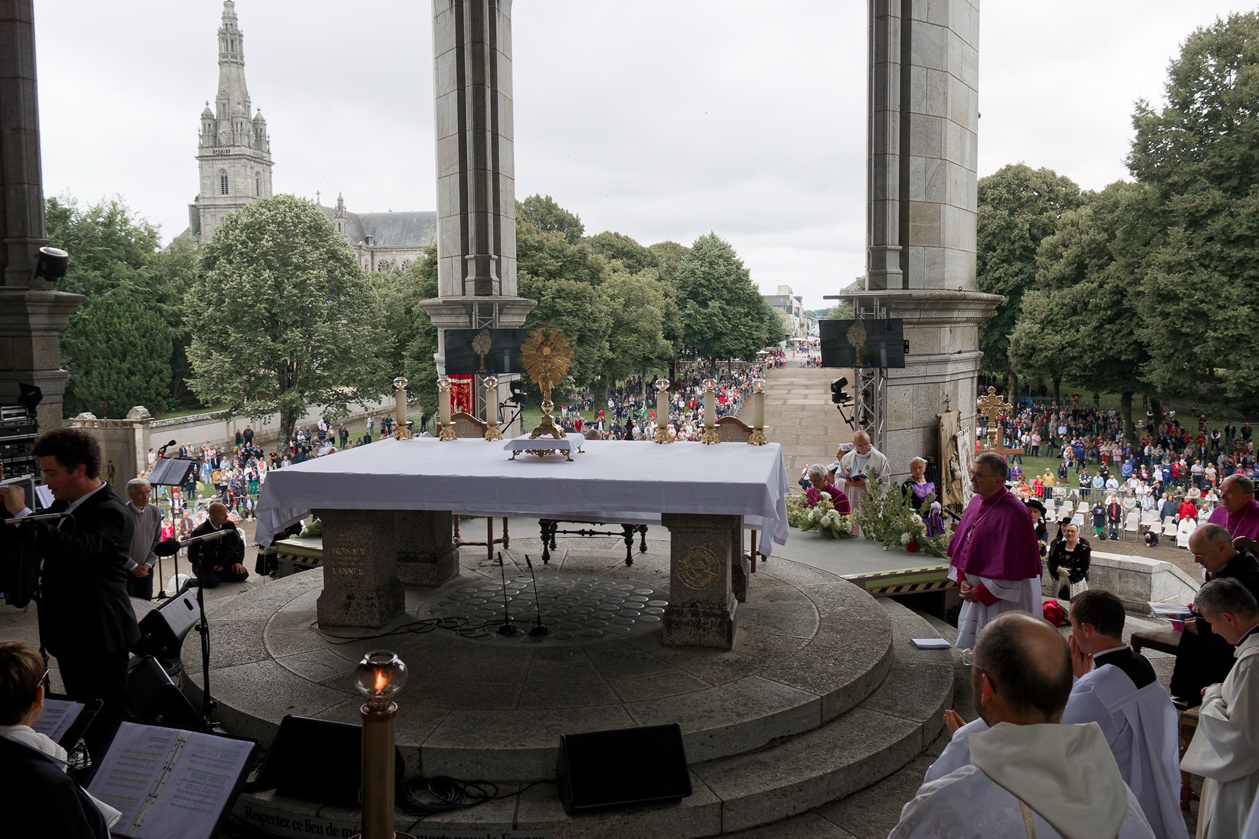 Après la grande veillée aux flambeaux de la veille au soir, des centaines de fidèles se sont de nouveau retrouvés devant le Mémorial pour la messe pontificale.