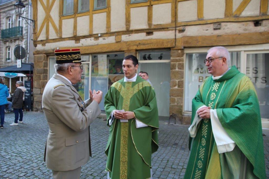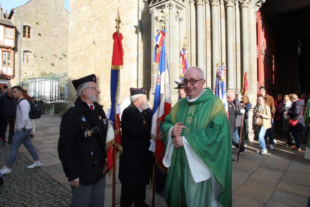 A la sortie de la messe, les honneurs ont été rendus par une vingtaine de porte-drapeaux d'associations patriotiques et d'anciens combattants.