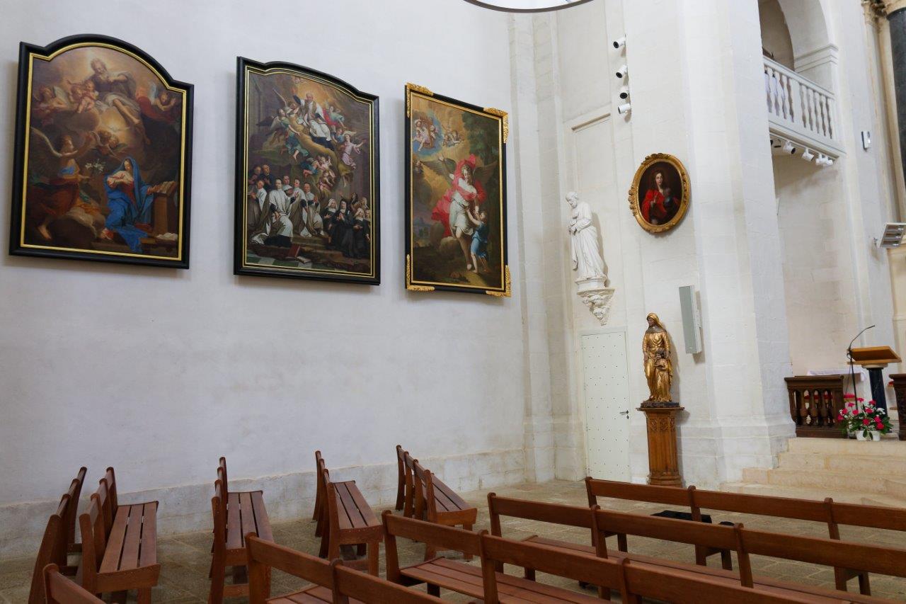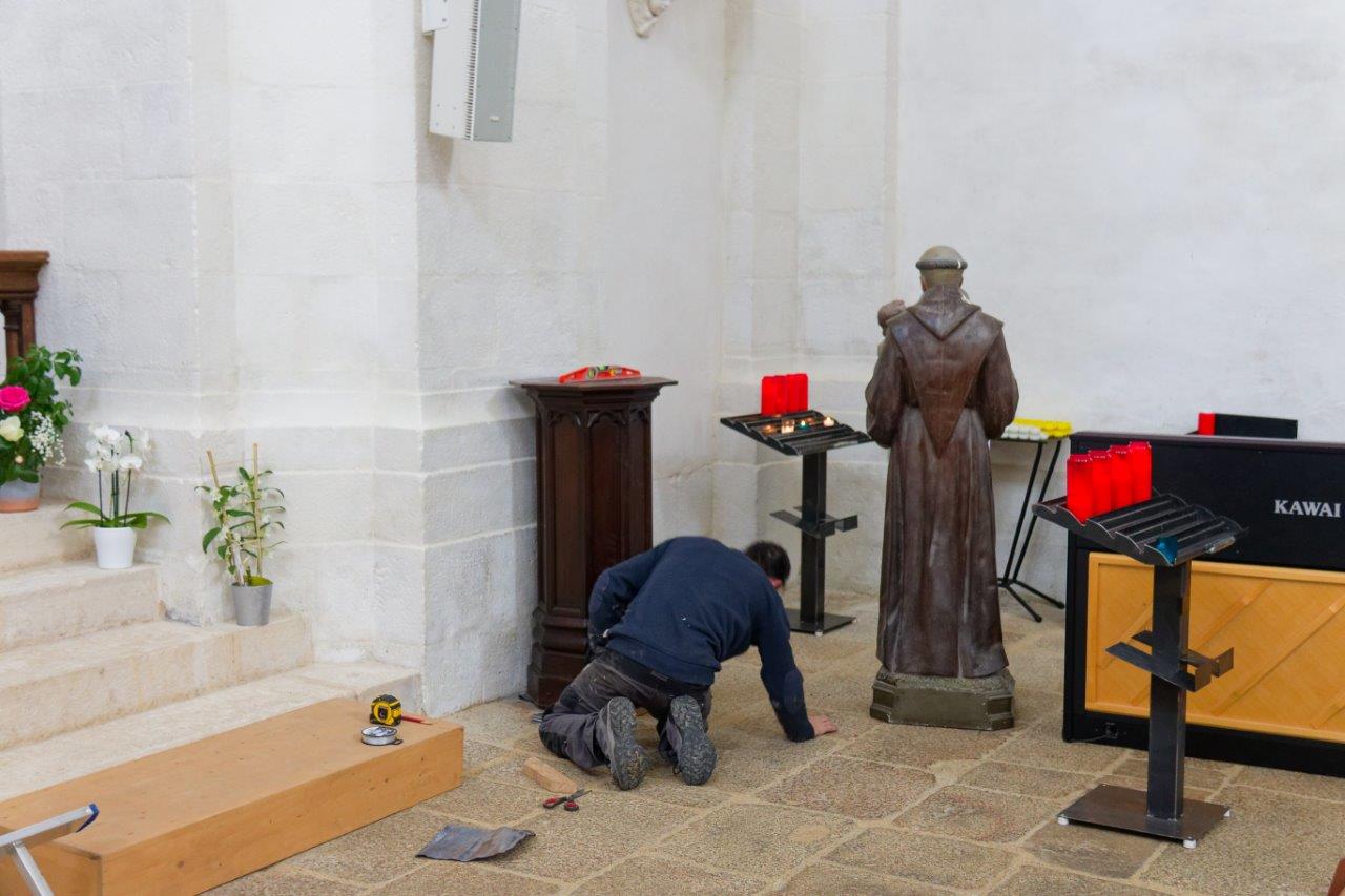 Pour faire place nette dans les chapelles latérales, deux statues ont été retirées pour être installées, le temps des travaux, dans la chapelle Saint-Yves.