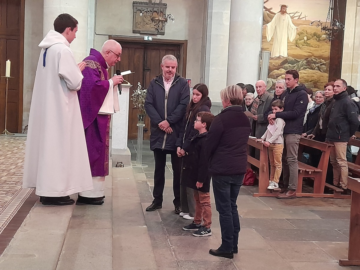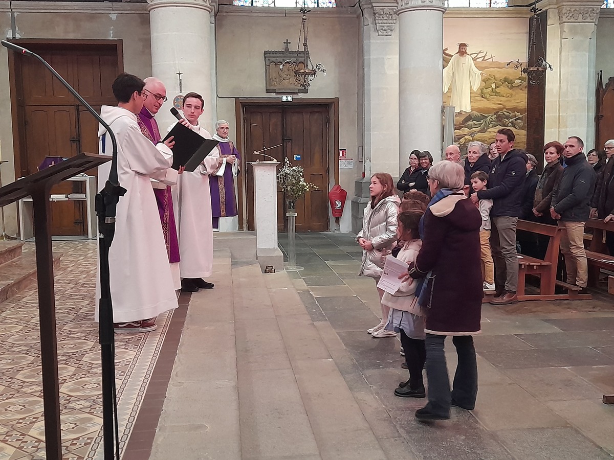 Au cours de la messe de 11 heures, Anouk, Louis Milan, Nathan et Sandro ont eu le troisième "scrutin" de leur préparation au baptême. Ils étaient tous très émus de vivre ce temps fort devant la communauté paroissiale, et ils ont eu une pensée spéciale pour Louis, malade, qui n'a pas pu être avec eux.