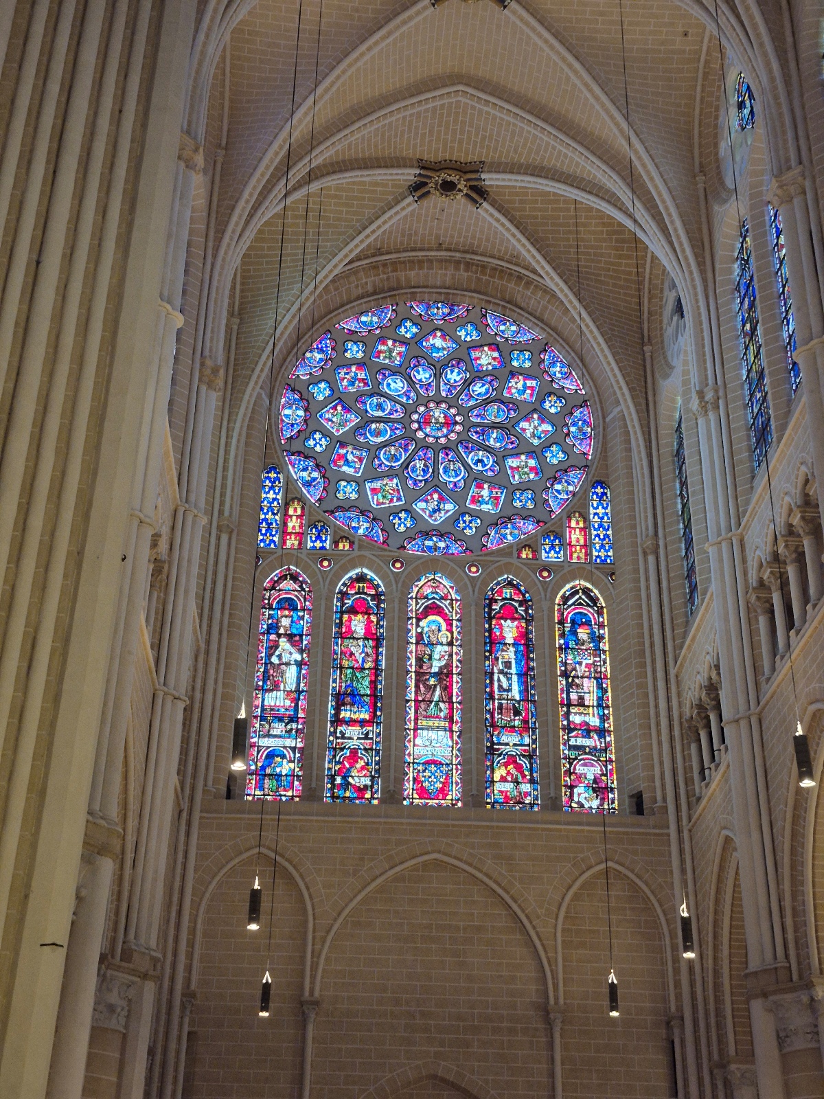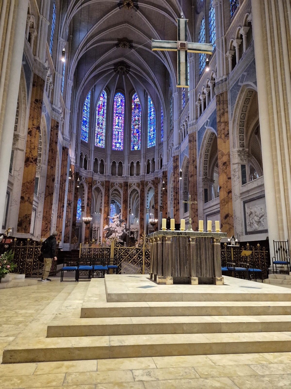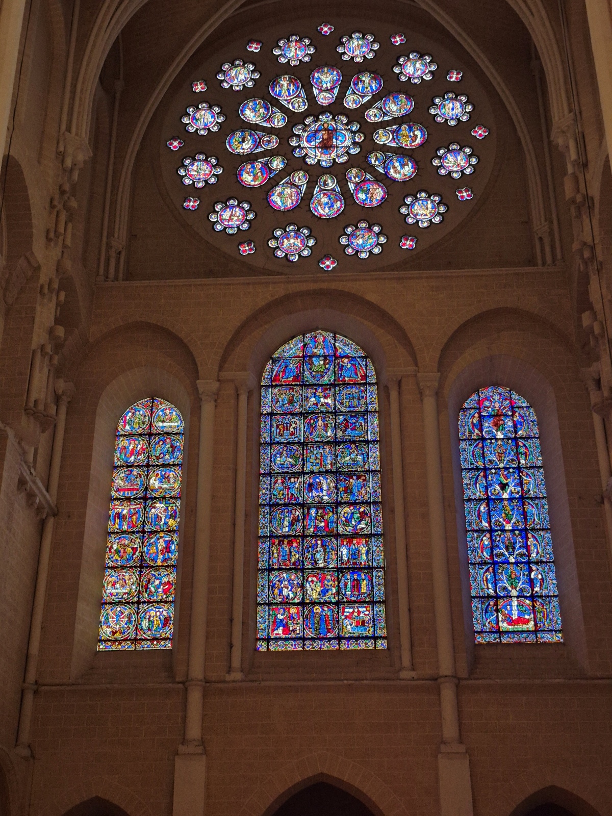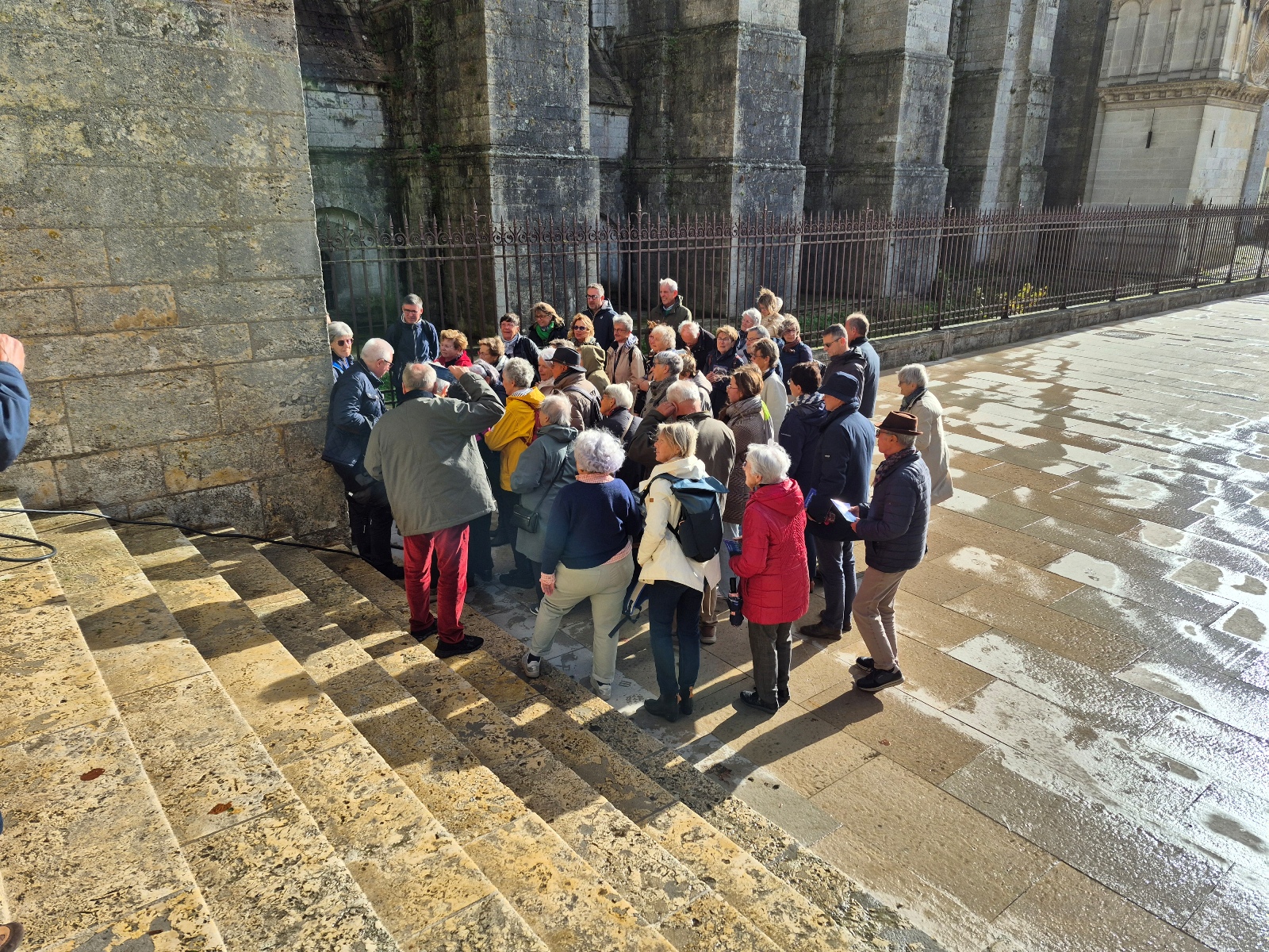 Aujourd'hui, la cathédrale a été presqu’entièrement rénovée, puisque seuls les murs intérieurs des bas-côtés n’ont pas été nettoyés puis blanchis au lait de chaux. Nous avons pu voir le nouveau mobilier liturgique, mais surtout nous avons été saisis par la beauté du tour extérieur du chœur, qui se présente comme une étonnante frise sculptée datant des années 1520-1530. Chapeau les artistes ! On pourrait comparer cette frise à une longue BD retraçant toutes les scènes de l’évangile. Une pure merveille !