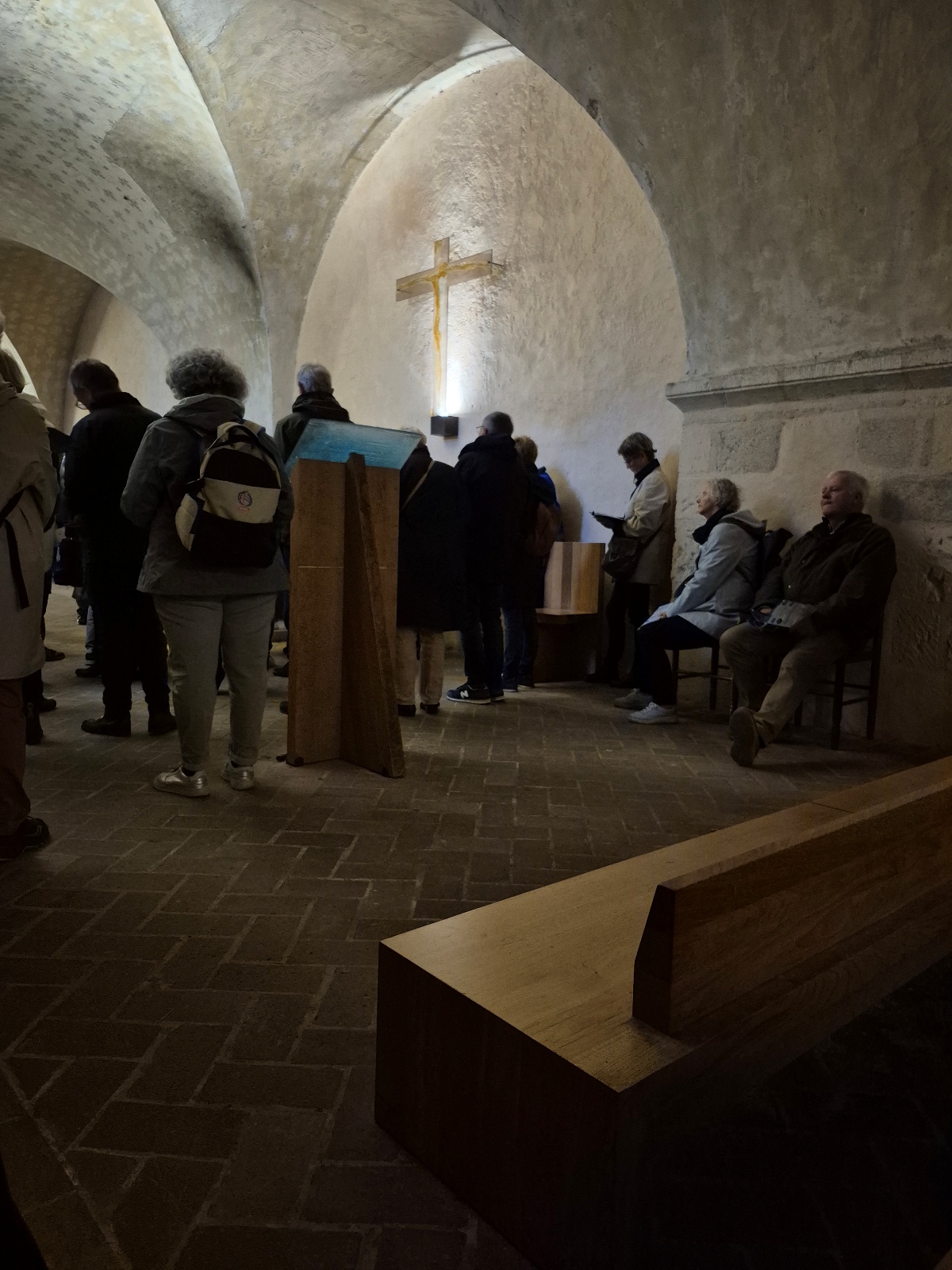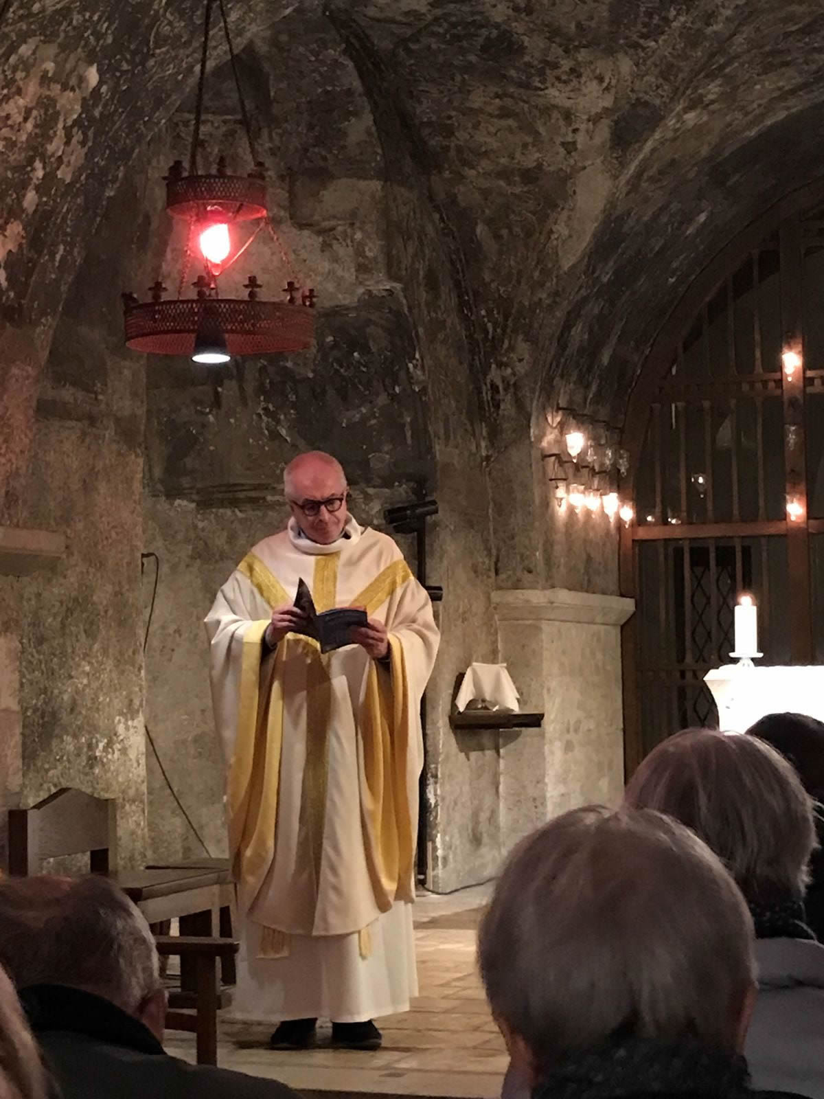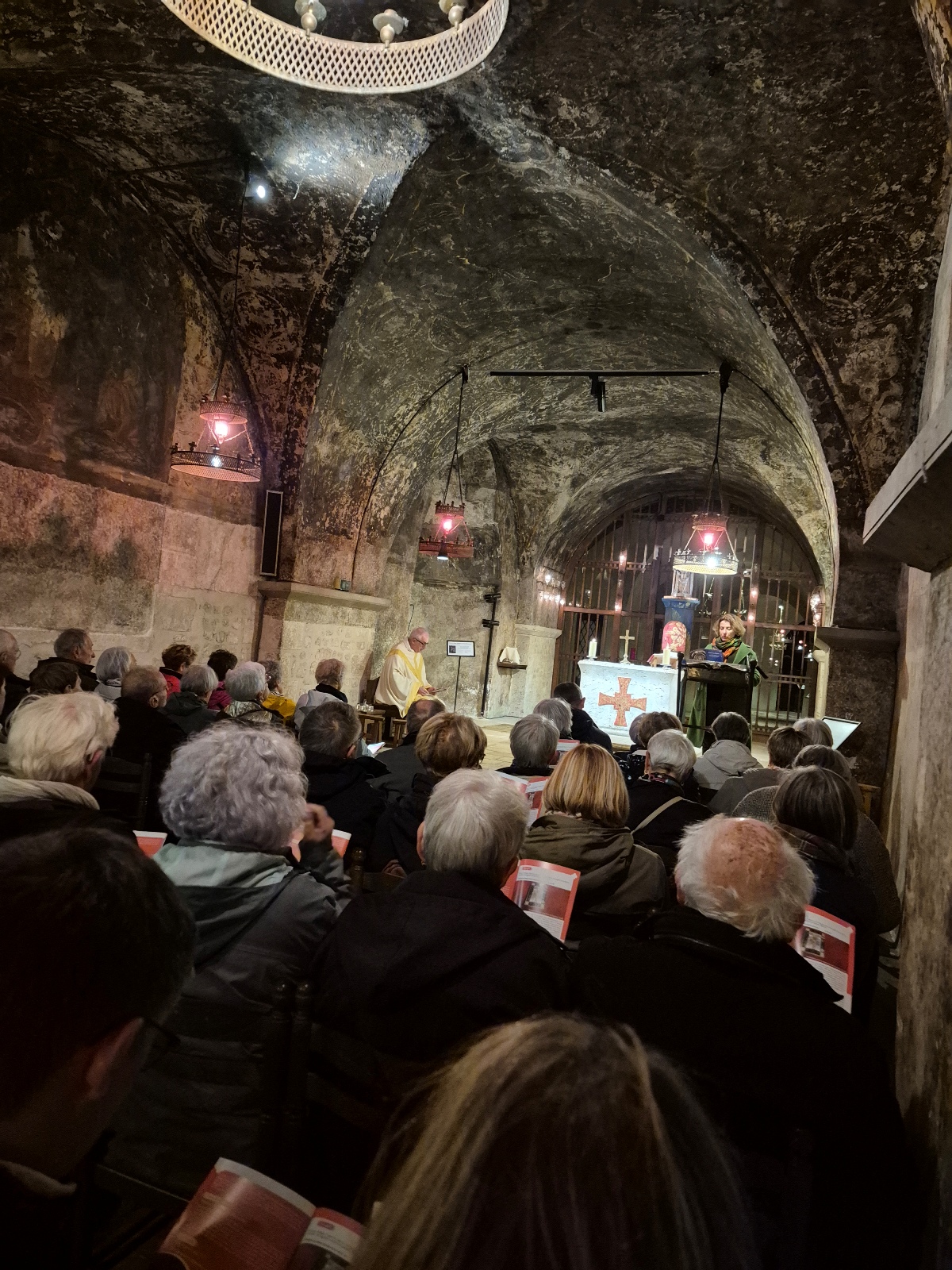 Pour terminer, nous avons eu la messe, célébrée par le père Patrice. « Une messe à nous, mais avec vous », dans le silence de la crypte.