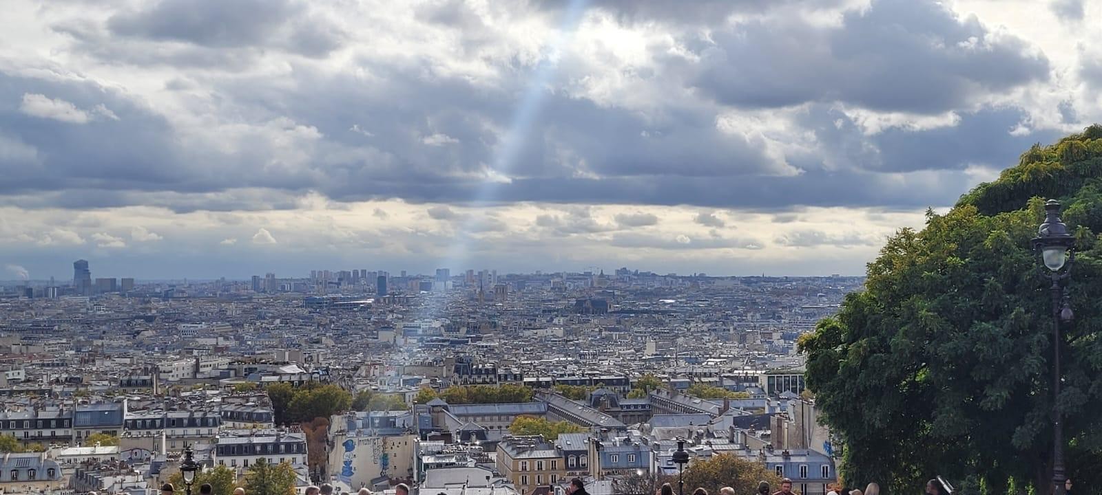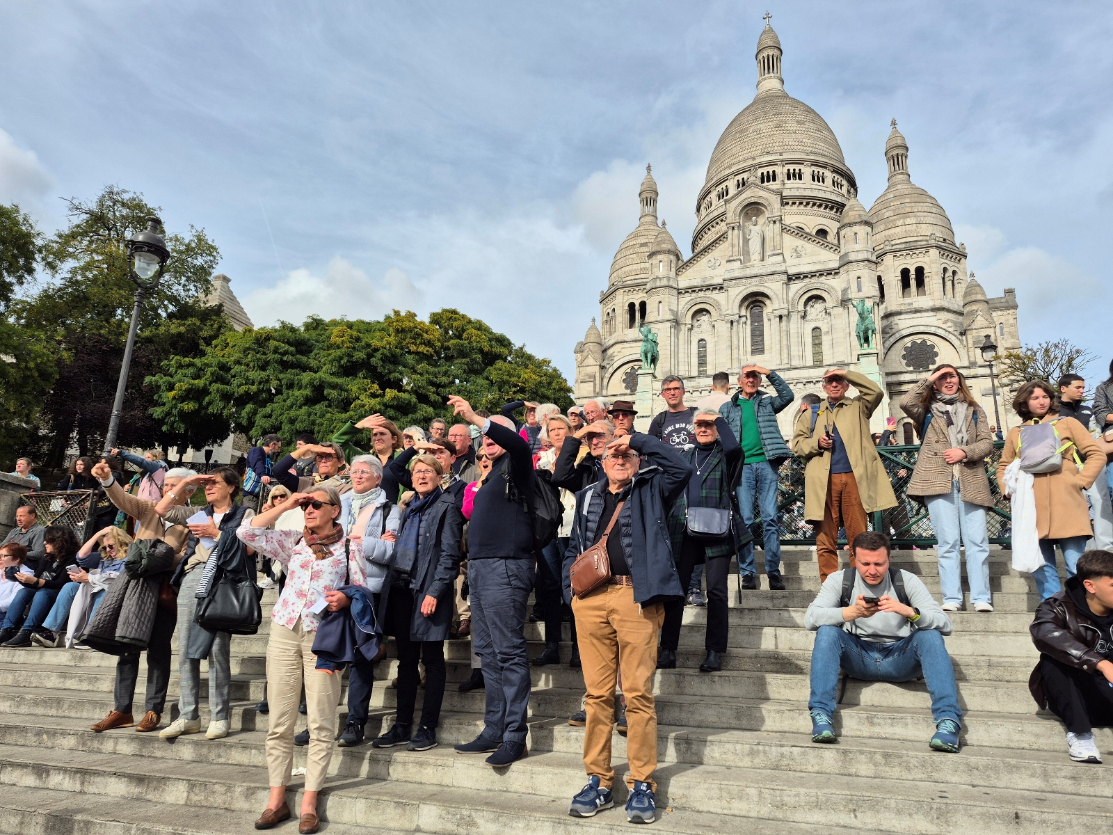 Ensuite, avant de redescendre de la Butte Montmartre, sur les marches de la Basilique, nous avons pris la pause pour la photo-souvenir du groupe ! et nos appareils photos ont engrangé des vues panoramiques de Paris qui s’étalait à nos pieds, sous le soleil.
