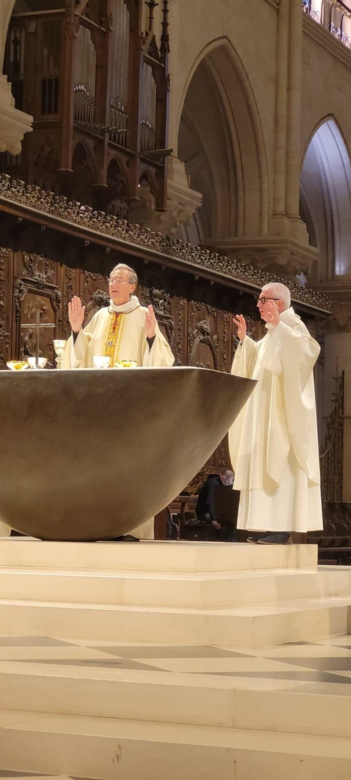 A 18h00, nous avons eu la messe, à laquelle concélébrait le père Patrice, avec une douzaine de prêtres brésiliens en pèlerinage à Notre-Dame. Vous pouvez revoir cette messe sur KTO.
